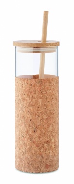Borosilikaattilasinen juomapullo, jossa korkkisuojahylsy ja bambukansi sekä pillit. Tilavuus 450 ml. Koska kyseessä on yksiseinäinen pullo, lämmön siirtymistä voi silti tapahtua.