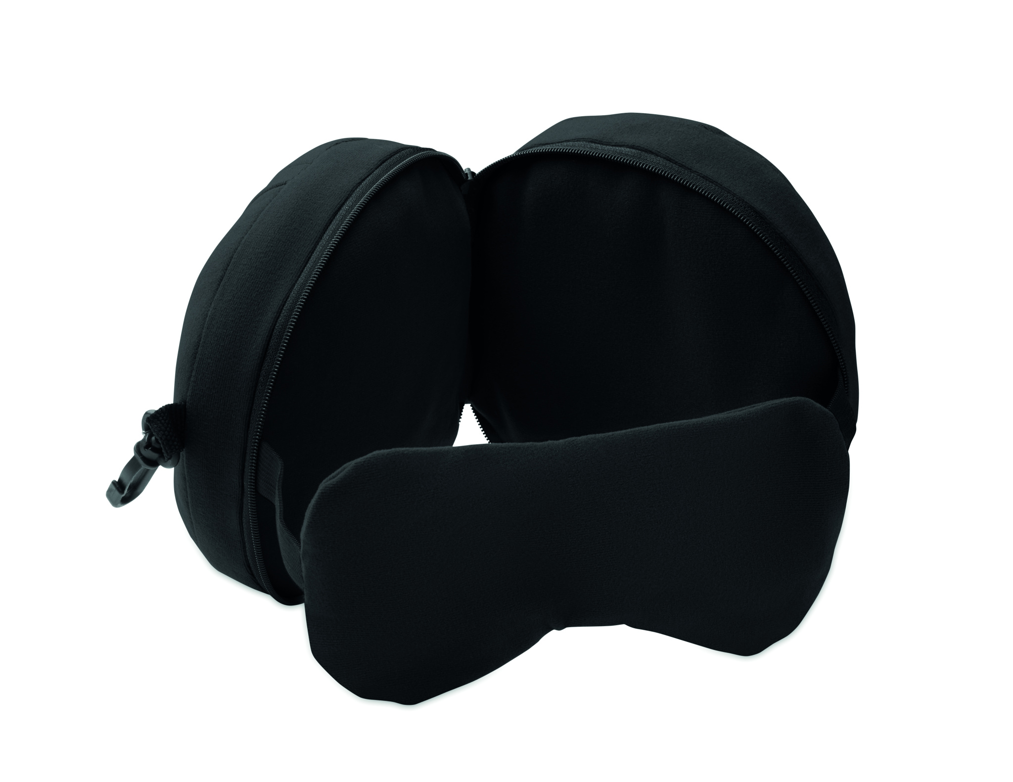 2-in-1-matkatyyny, johon on kiinnitetty silmämaski.