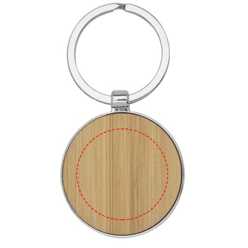 Erinomaista laatua oleva bambusta valmistettu pyöreä avaimenperä sinkkiseoksesta tehdyllä metallikehyksellä, joka toimitetaan ruskeassa kierrätyspaperikuoressa. Avainketjun halkaisija on 4 cm. Tehty laserkaiverruksia varten.