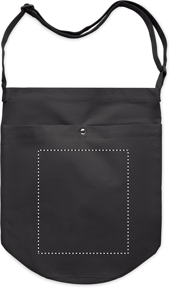 Kangaskassi, jossa pitkä säädettävä olkahihna ja suuri etutasku, jossa on nepparikiinnitys. Sisältää sisätaskun. Materiaali 270 gr/m²canvas.