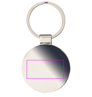 Tyylikäs metalliavainrengas, jossa on puinen sisäosa, johon logosi kaiverretaan.