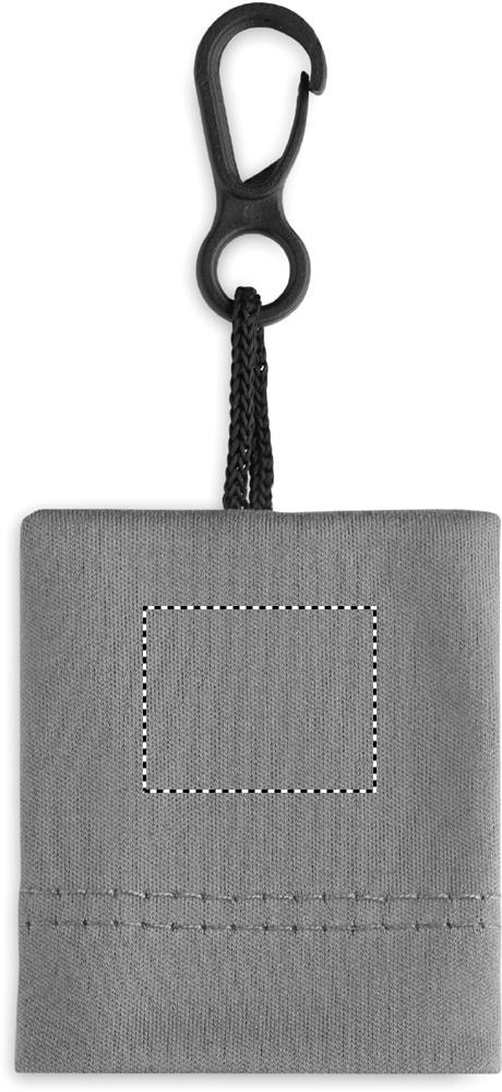 Puhdistusliina RPET-materiaalista omassa pussissaan, jossa PP-muovinen ripustuskoukku