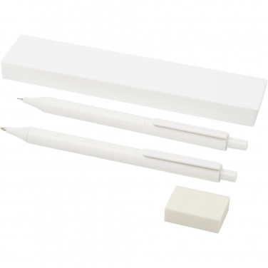 Antibakteerinen kirjoitustarvikesarja, jossa on napsautettava kuulakärkikynä, lyijytäytekynä ja pyyhekumi. Nanojauhepinnoitus vähentää mikro-organismien kasvua kynien pinnalla.