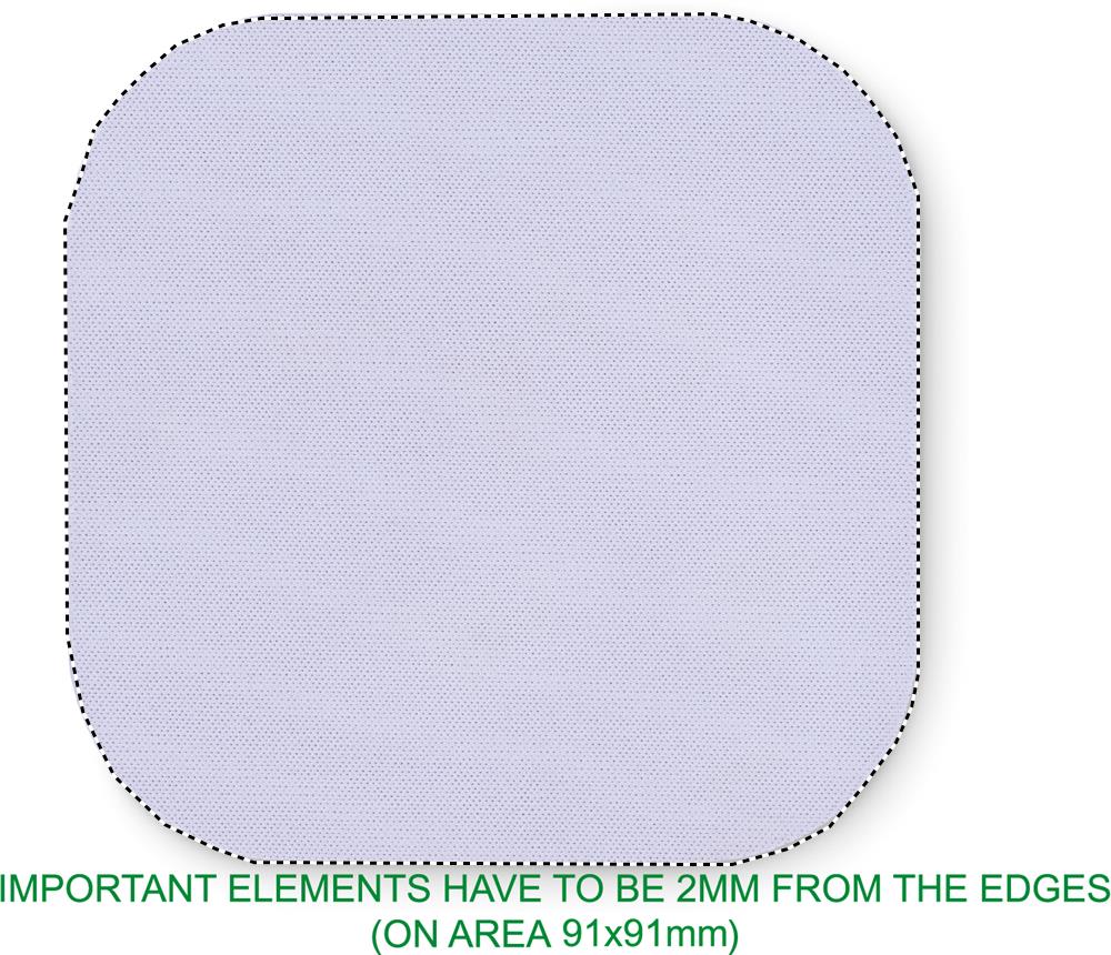 Polyesterinen sublimoitava lasinalunen kumisella pohjalla, koko 9.5x9.5x0.2cm.