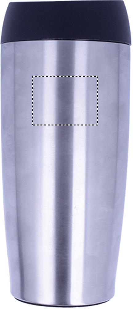 Kaksiseinäinen ruostumattomasta teräksestä valmistettu 350 ml termosmuki, PP- kansi painomekanismilla, vuoto vapaa.