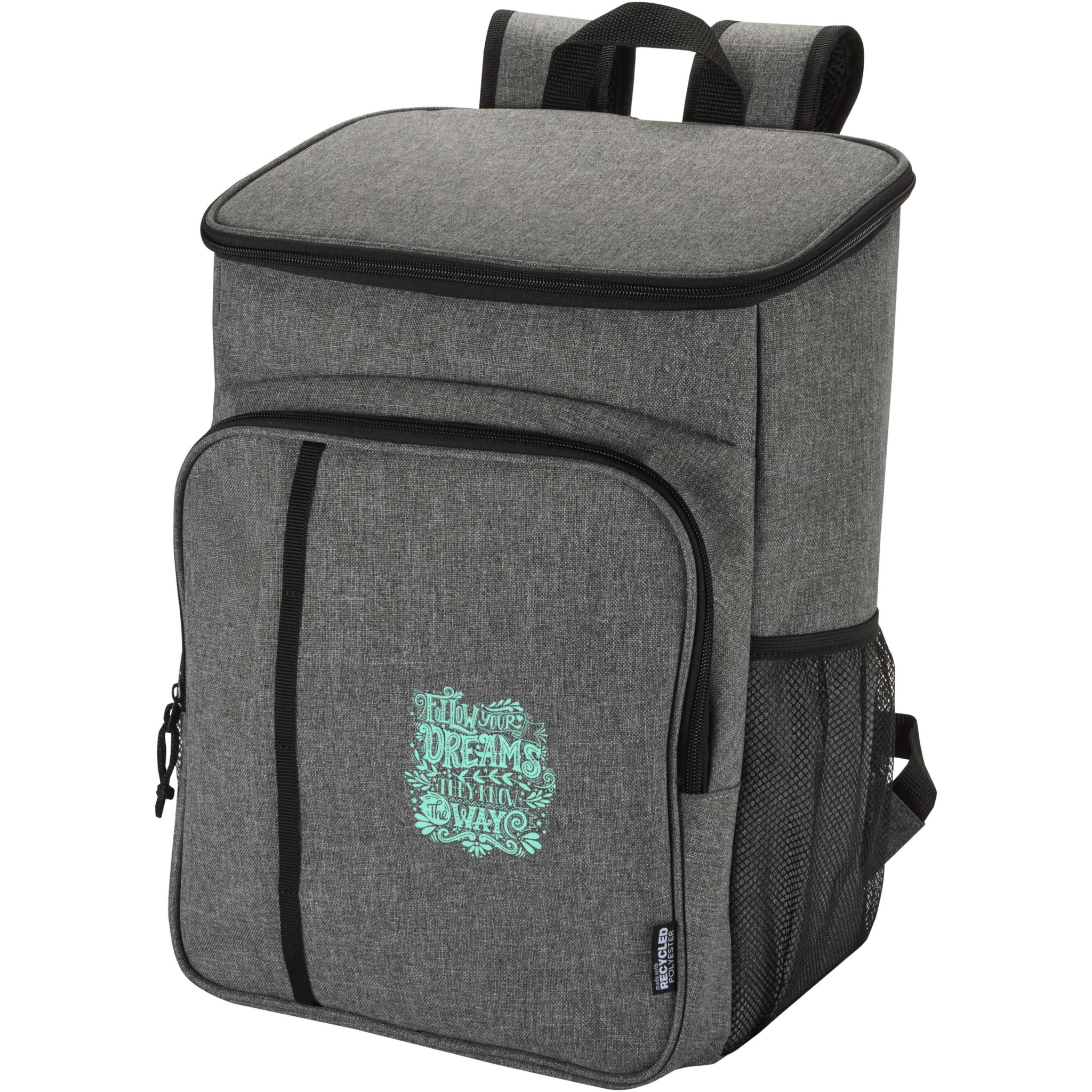 Tundra piknik-kylmäreppu on valmistettu GRS-sertifioiduista kierrätysmateriaaleista, ja sen mukana tulee uudelleenkäytettävä elintarvikelaatuisesta muovista valmistettu kahden hengen aterinsetti. Vuotamaton päälokero, joka on eristetty tiheällä vaahtomuovilla ja jossa on lämpösaumattu PEVA-vuori, pitää ruoan ja juomat kylminä tuntikausia. Lisämukavuutta varten repussa on kaksi sivuverkkotaskua, vetoketjullinen etutasku aterimille (kaksi veistä, kaksi haarukkaa, kaksi kuppia ja kaksi lautasta) sekä ylimääräinen vetoketjullinen tasku päällä. Pehmustetut, säädettävät olkahihnat ja tukeva kantokahva. Ihanteellinen reppu piknikille, ulkona syömiseen, retkeilyyn tai rannalle. Tilavuus: 20 litraa.