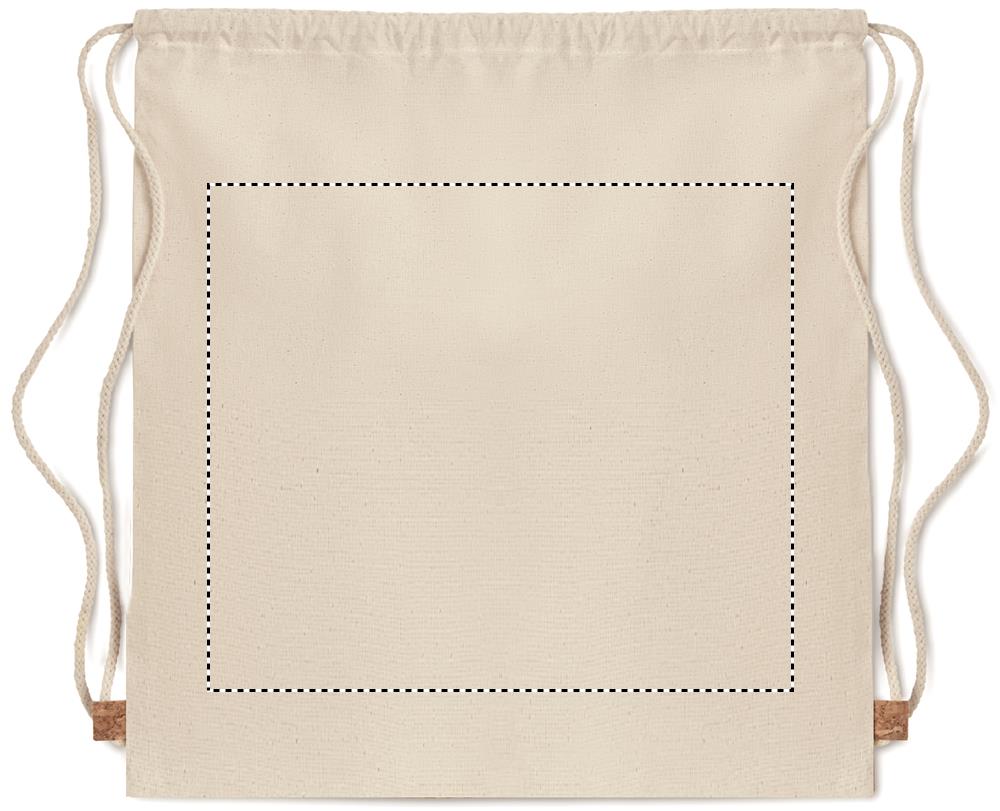 Sarža kokvilnas aukliņu soma ar korķa detaļu. 160 gr/m². Korķis ir dabisks materiāls, tā strukturālās īpašības un virsmas porainības dēļ gala izdrukas rezultātam uz vienu vienību var būt novirzes.