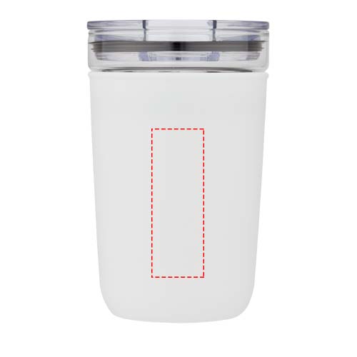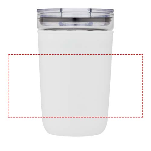 Stikla trauku aizsargā otrreizēji pārstrādāts plastmasas korpuss. Tvertne ir izgatavota no 100% izturīga borsilikāta stikla, kas saglabā dzēriena svaigumu un nesatur nekādas kaitīgas ķīmiskas vielas. Nesatur BPA, pārbaudīts un apstiprināts saskaņā ar Vācijas pārtikas nekaitīguma tiesību aktiem (LFGB). Pārbaudīts un apstiprināts attiecībā uz ftalātu saturu saskaņā ar REACH noteikumiem. Tvertne ietilpst vairumā kafijas automātu. Tilpums ir 420 ml. Noņemot plastmasas korpusu, priekšmetu var mazgāt trauku mazgājamā mašīnā. Prezentēts pārstrādāta kartona dāvanu kastītē.