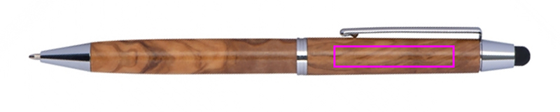 Lodīšu pildspalva izgatavota no olīvkoka, ar pieskāriena funkciju un zilu rakstāmpiepildījumu. Jūsu logotips tiks iegravēts zem klipa.