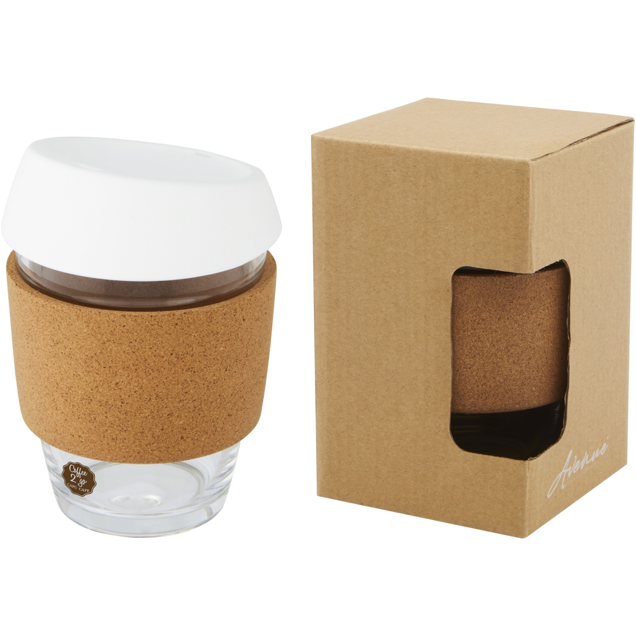 Viensienas borsilikāta stikla trauks ar gludu korķa rokturi. Ir noņemams pārtikai drošs silikona vāks. Īkšķis ir izgatavots no 100% izturīga borsilikāta stikla, kas saglabā dzēriena svaigumu un nesatur kaitīgas ķīmiskas vielas. Pārbaudīts un apstiprināts saskaņā ar Vācijas pārtikas nekaitīguma tiesību aktiem (LFGB) un pārbaudīts uz ftalātu saturu saskaņā ar REACH noteikumiem. Ietilpst vairumā kafijas automātu, padarot to par ideālu trauku darbam, atrodoties ceļā. Tilpums ir 360 ml. Noņemot korķa rokturi, trauku var mazgāt trauku mazgājamajā mašīnā. Prezentēts pārstrādāta kartona dāvanu kastītē.