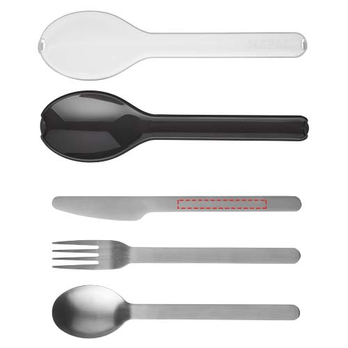 Šajā stilīgajā un praktiskajā Ellipse galda piederumu komplektā ietilpst nazis, dakšiņa un karote, kas visi ir izgatavoti no nerūsējošā tērauda. Galda piederumi ir ievietoti kompaktā plastmasas turētājā. Droši mazgājami trauku mazgājamajā mašīnā.