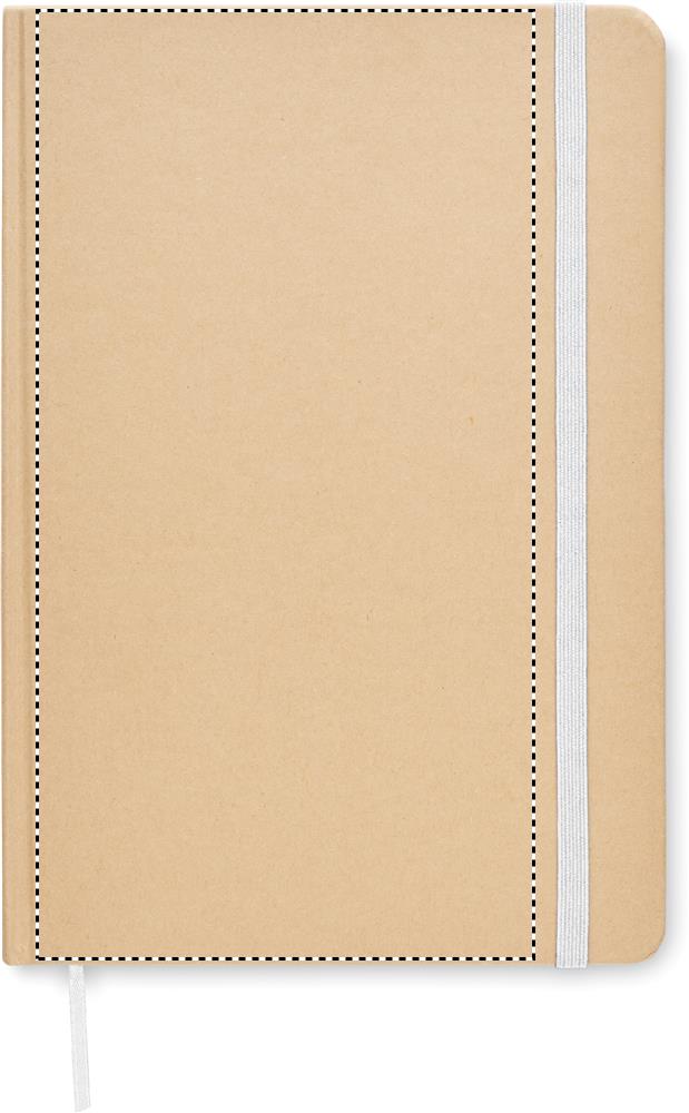 Блокнот формата A5 на резинке в твердой обложке из переработанного картона. В переплете. 160 страниц в клеточку из переработанного картона (80 листов). Ленточка-закладка.