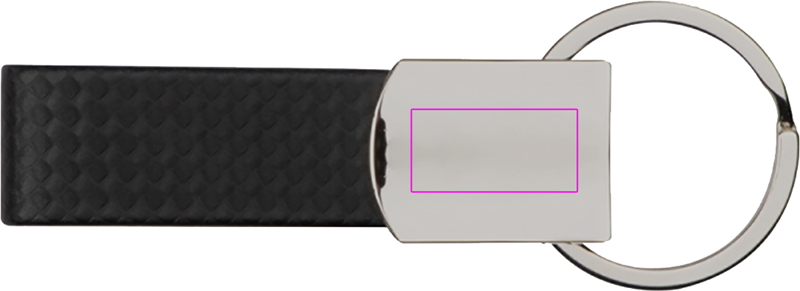 Элегантный металлический брелок с ремешком под карбон. Ваш логотип будет выгравирован на хромированной поверхности.