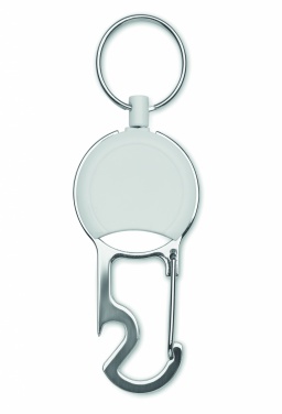 Выдвижной держатель для бейджей из пластика с клипом, брелком для ключей и открывалкой для бутылок.