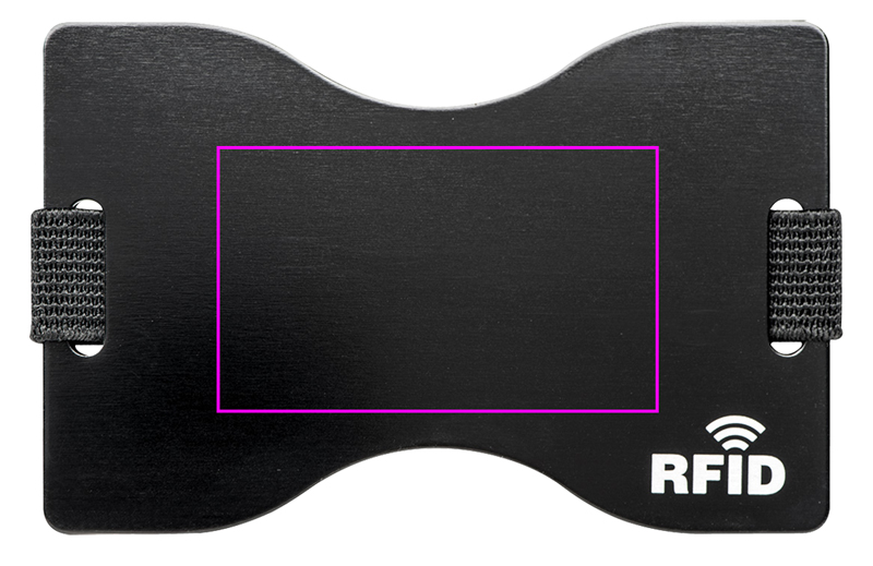 Алюминиевый держатель карт с защитой RFID (радиочастотная идентификация) от несанкционированного считывания, например, кредитных карт, банковских карт, удостоверений личности и т. д. Логотип нанесен лазером на корпус.