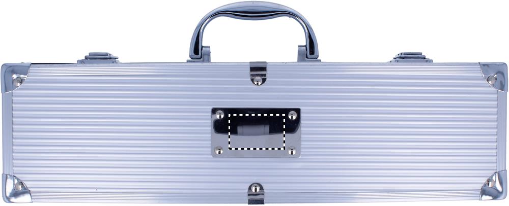 Алюминиевый чемоданчик с 3 приборами из нержавеющей стали для барбекю. Для нанесения логотипа предлагается специальная пластина.