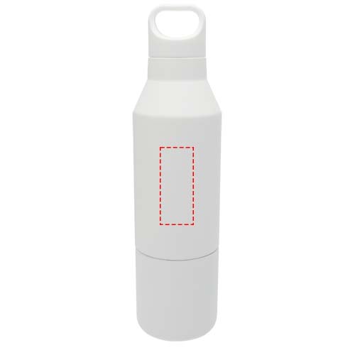 Бутылка из нержавеющей стали с двойными стенками и медной изоляцией, сертифицированная согласно RCS, со съемной крышкой. Эта многофункциональная бутылка помещается в боковой карман рюкзака и имеет удобную ручку для переноски, встроенную в крышку. Прочное порошковое покрытие снаружи. Напитки останутся горячими в течение 12 часов и холодными в течение 24 часов. Поставляется в подарочной коробке из переработанного картона. Объем бутылки: 600 мл. Объем кружки: 300 мл.