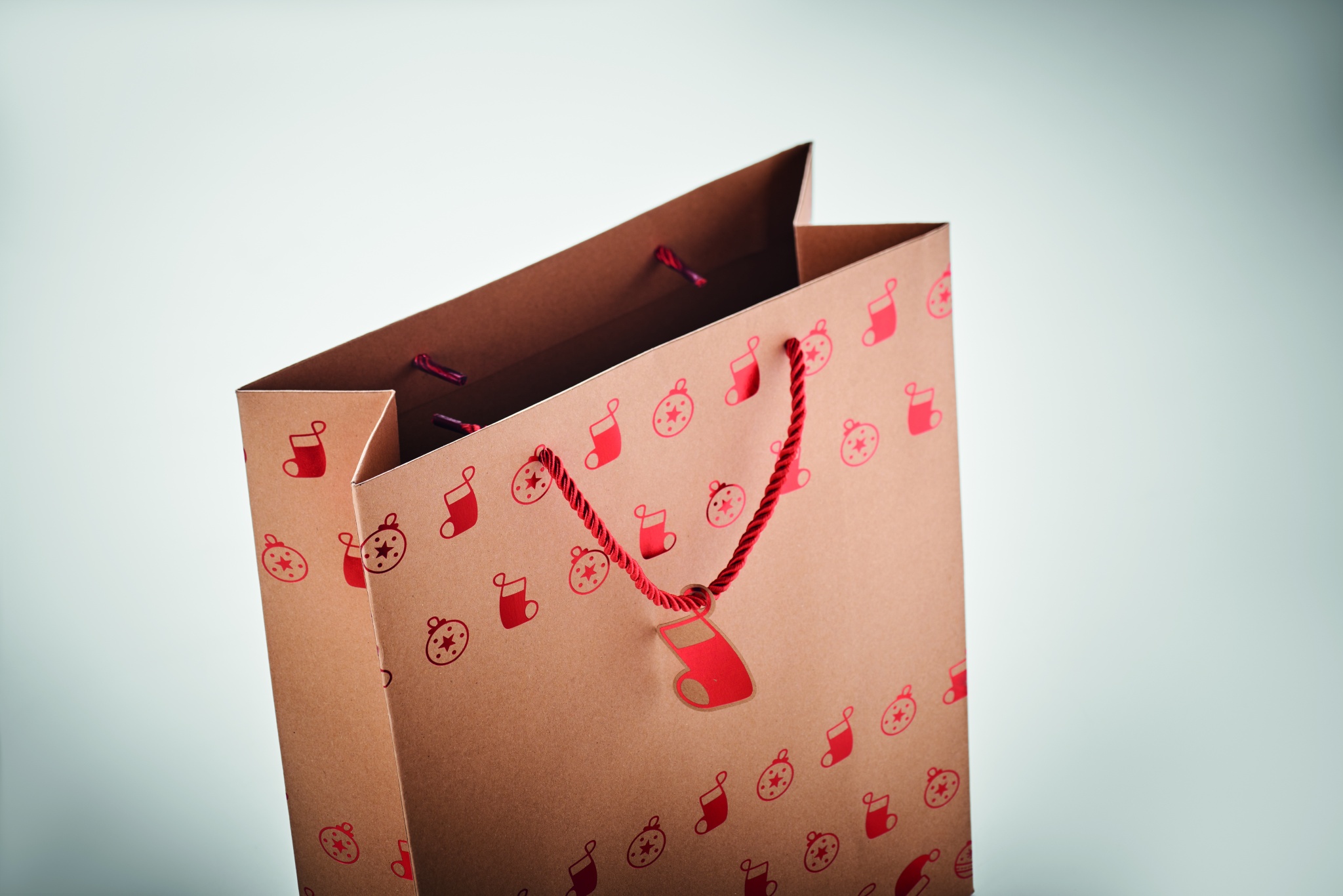 Элегантный подарочный пакет из крафт-бумаги с сезонным рисунком. Подарочная бирка в комплекте. 250 гр/м².