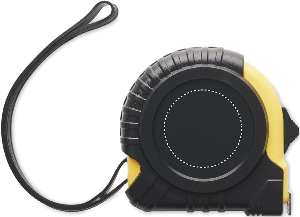 Измерительная лента 3 м из переработанного пластика. Включает ремешок для руки и серебристый металлический зажим.