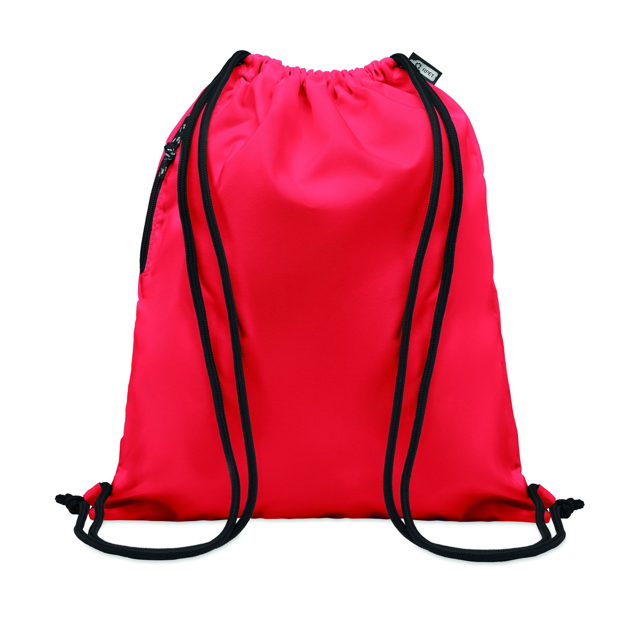 Большой рюкзак-мешок из полиэстера 300D RPET с боковым наружным карманом на молнии.