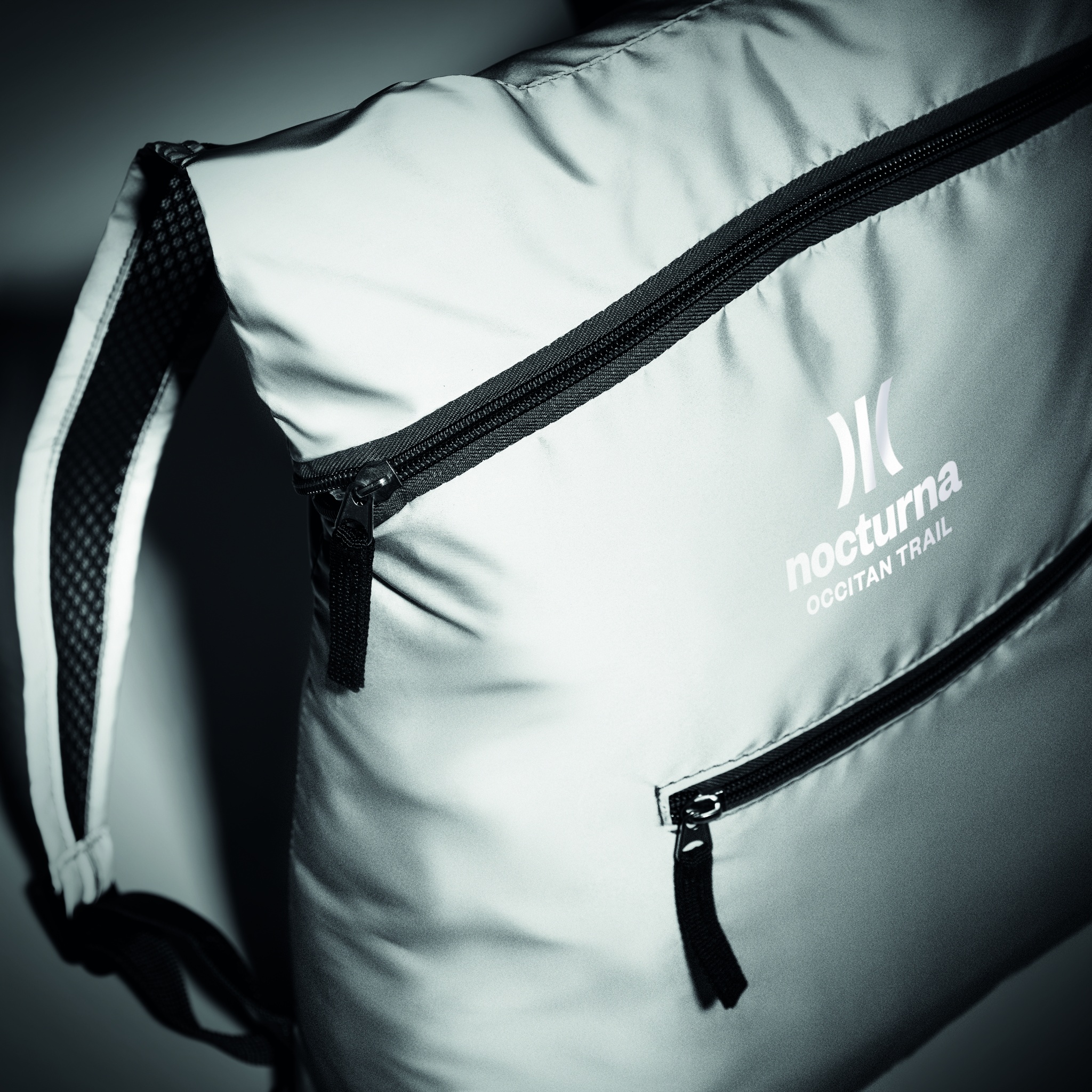 Складной спортивный рюкзак из светоотражающего полиэстера 190T с передним карманом на молнии. Регулируемые плечевые ремни.
