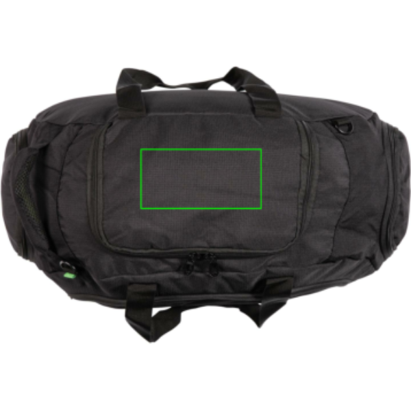 Ткань рипстоп 600D, передний карман на молнии с внутренними органайзерами, боковой карман, карман для обуви, тканые ручки и плечевой ремень, 4 ножки на основании, без ПВХ.
