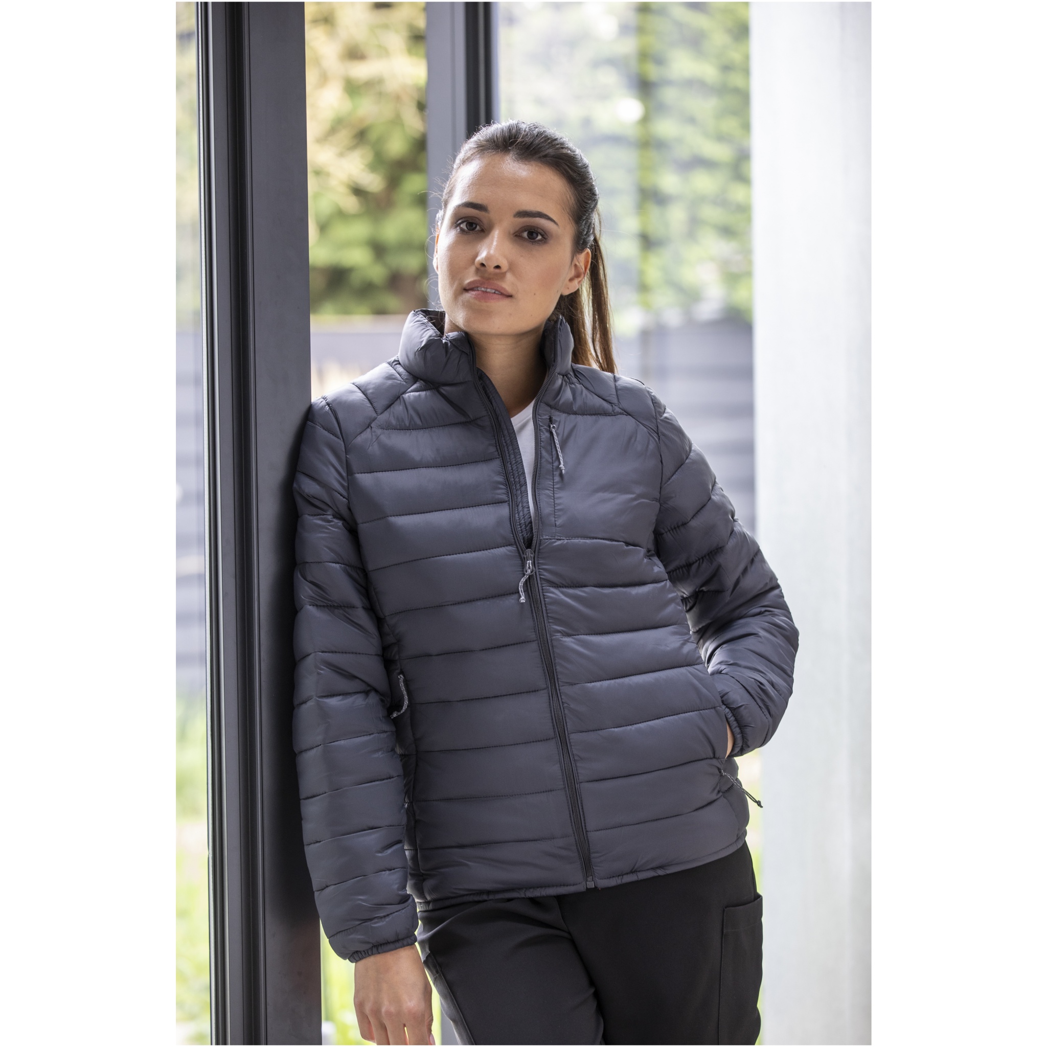 Женская утепленная куртка Athenas - идеальное сочетание стиля и функциональности. Оставайтесь защищенными от холода и ветра благодаря внутреннему штормовому клапану с шингардом. Нагрудный карман куртки с застежкой-молнией обеспечивает надежное место для Ваших необходимых вещей. Эластичная резинка придает стильный вид и обеспечивает надежную посадку. Изготовленная из нейлоновой ткани dull cire 380T плотностью 38 г/м², куртка обеспечивает гладкий и прочный внешний вид. Подкладка и наполнитель состоят из искусственного пухового утеплителя из полиэстера, обеспечивая легкое тепло без ущерба для комфорта. Эта куртка имеет приталенный фасон для создания женственного образа.