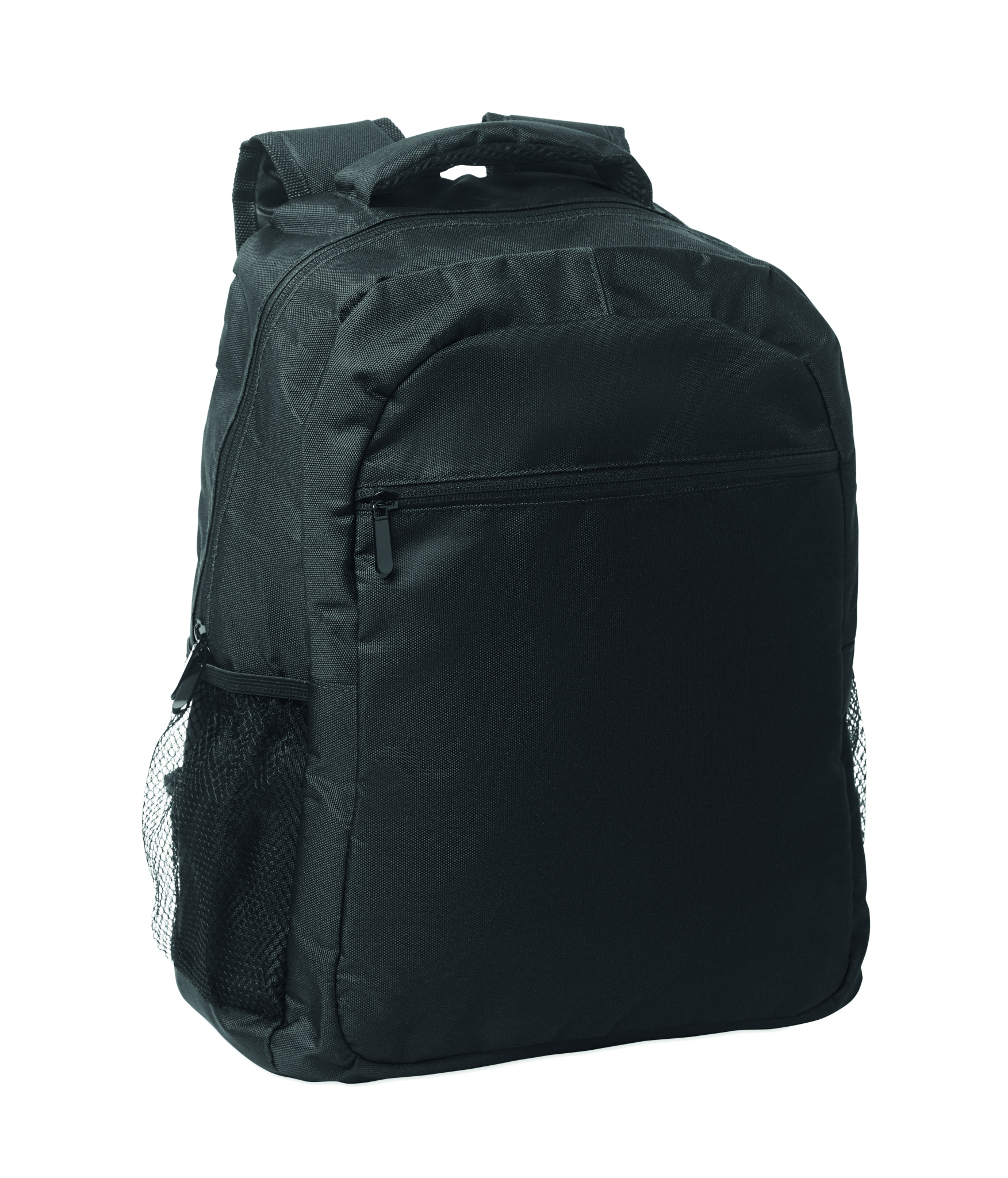 Dataryggsäck för 15 tum laptops i 600D RPET-polyester med vadderat laptopfack inuti, nätfickor på båda sidor och frontficka med dragkedja.