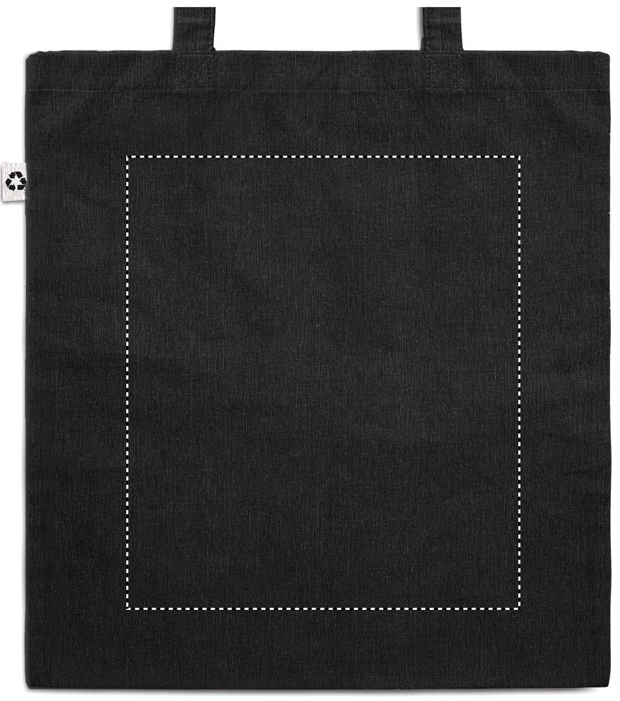 Tygkasse i tvåfärgad återvunnen bomull och återvunnen polyester med långa handtag (20%/80%). Ca 140gr/m². Den här artikeln kan krympa efter tryckning.