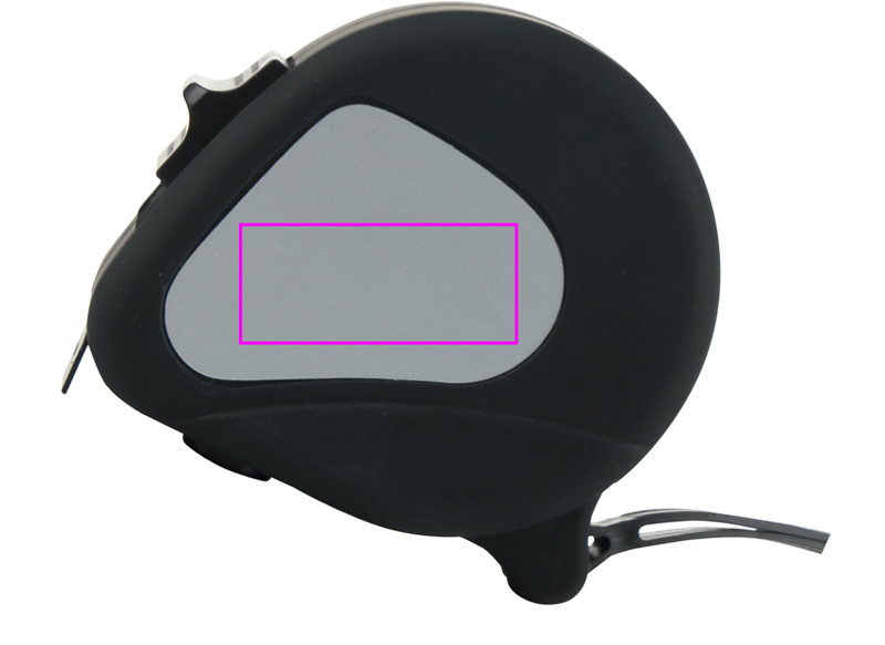 Stålmåttband med en mätlängd på 5 meter, låsslid, snabbknapp och handrem. Gummifinishen ger en särskilt behaglig känsla. Vi trycker din logotyp på silveremblemet.