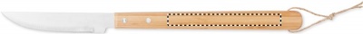 Set med 5-delars grillverktygssats i rostfritt stål med bambushandtag och påse i vaxad canvas. Innehåller spatel, kniv, tång, gaffel och grillpensel.