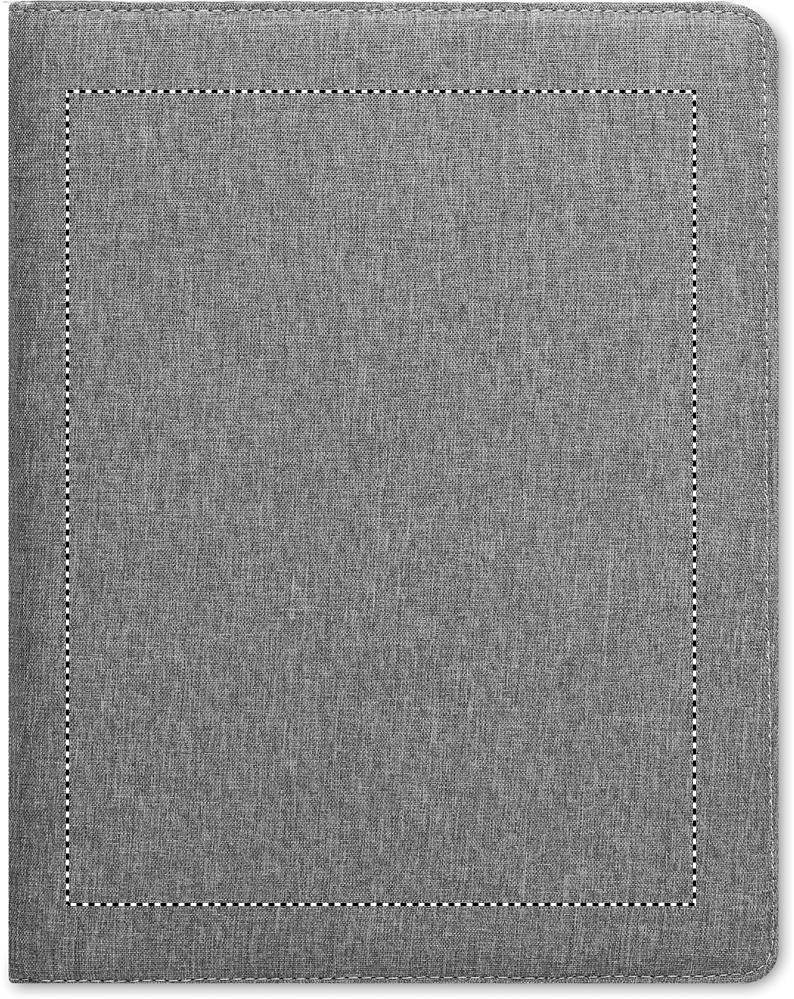 Konferensmapp i A4-storlek i tvåfärgad 300D RPET. Innehåller innerfack, pennhållare och block med 20st linjerat ark.