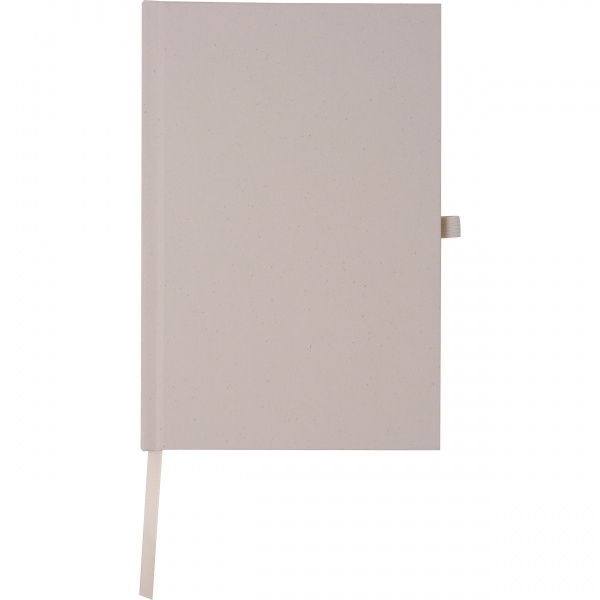 A5-anteckningsbok med ett omslag av kokosnötskal och 160 linjerade sidor av återvunnet papper. Anteckningsboken har även ett bokmärke och en pennhållare. Din logotyp är tryckt på utsidan av omslaget.