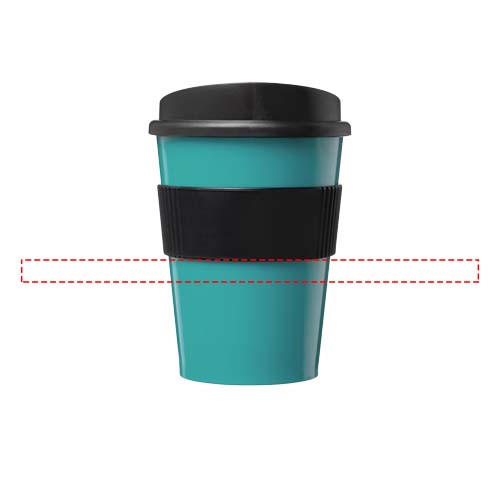 Mugg med enkelvägg, trycklock och silikongrepp. Volymkapacitet 300 ml. Skapa den perfekta muggen genom att mixa och matcha färger. Tillverkad i Storbritannien. BPA-fri. Förpackad i en återvunnen PE plastpåse. EN12875-1-kompatibel, tål maskindisk och mikrovågsugn.