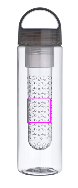 Dricksflaska av plast med infusionsanordning för (t.ex.) frukt och 650 ml kapacitet. Vi kommer att trycka din logotyp på flaskan.