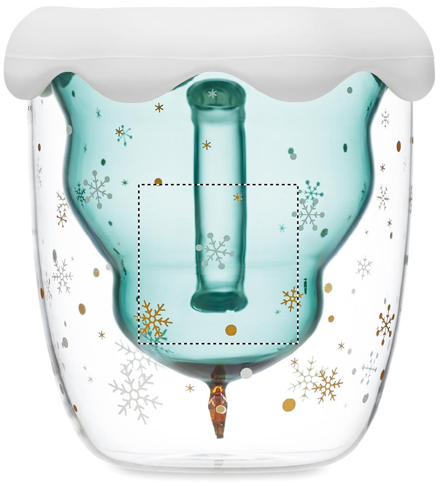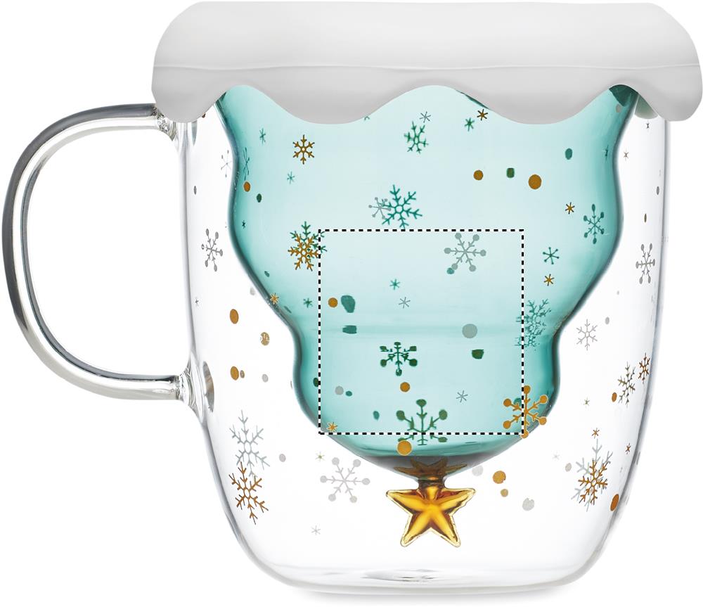 Dubbelväggig borosilikatmugg i säsongsdesign med lock och underlägg i silikon. Kapacitet: 250 ml.