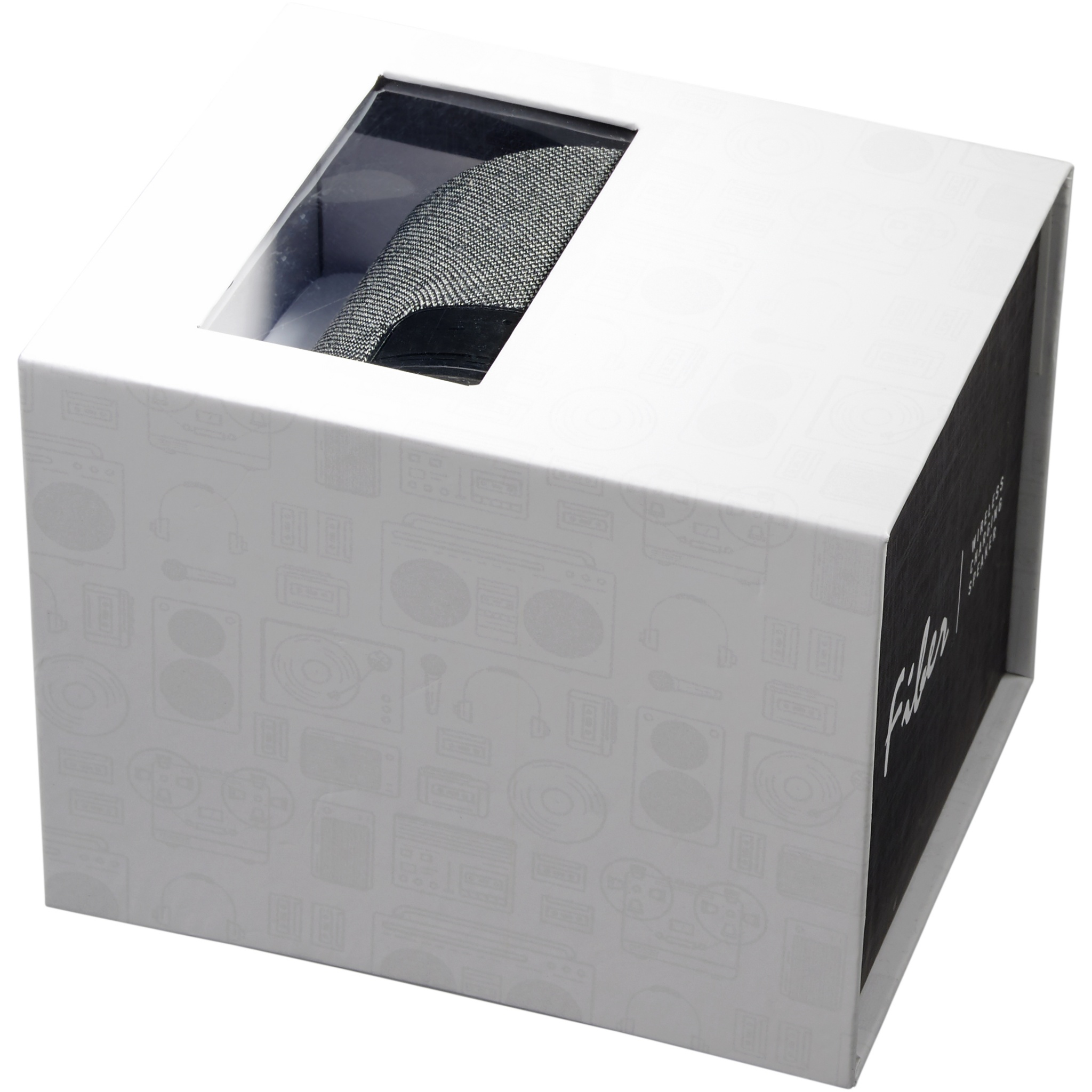 Fiber Bluetooth® -högtalare med trådlös laddning. Den ultimata teknikprylen! Fiber Bluetooth® -högtalare med trådlös laddning är perfekt för både kontoret eller hemmet. Högtalarens utgång på 3 W ger ett kristallklart ljud. Dessutom är högtalarens övre del en trådlös laddningsplatta! Den kan ladda alla trådlösa laddningsenheter som är kompatibla. Med det inbyggda batteriet på 1 200 mAh kommer den att fortsätta spela musik i över 6 timmar. En inbyggd musikkontroll och mikrofon för handsfree-funktion. En Bluetooth-räckvidd på 10 meter (33ft). Bluetooth version 5.0. ABS-plast och tyg.