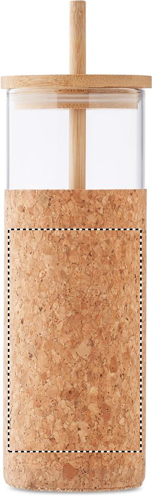 Glas i borosilikatglas med skyddshylsa av kork och lock och sugrör av bambu. Volym: 450 ml. Eftersom detta är en enkelväggig mugg kan värmeöverföring fortfarande förekomma.