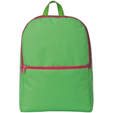 Långvarig ryggsäck gjord av 600D polyester i pråliga färger med ett stort huvudfack och ett extra frontfack. Din logotyp kommer att tryckas på det främre facket.