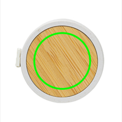 1,5m/60inch återvunnet plastband i återvunnen plast med returtryckknapp, för fitness och mode. Höljet är tillverkat av RCS-certifierad återvunnen ABS-plast, glasfiber och FSC® 100% bambu. Totalt återvunnet innehåll: 64% baserat på total produktvikt. RCS-certifiering garanterar en helt certifierad leveranskedja för de återvunna materialen. Bandet är 8mm brett och kan dras in med hjälp av en knapp. Levereras i FSC®-mixförpackning.