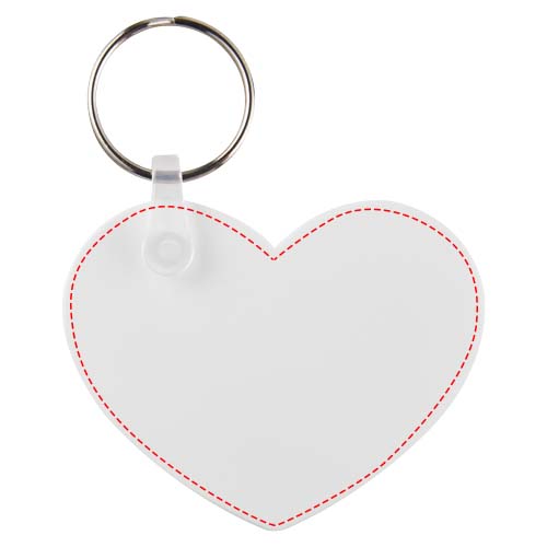 Vit hjärtformad nyckelring med delad nyckelring i metall. Metallringen har en platt profil som är idealisk för utskick.