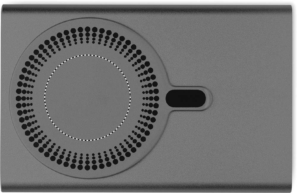 Magnetisk powerbank 5000mAh med trådlös laddning 15W, via kabel 20W, i återvunnen aluminium. Utgång: DC 9V/1,66A. In/utgång: Typ-C. Stöd för Power Delivery (PD) för laddning av den senaste bärbara datorn MacPro®. Ingång/utgång: Typ-C. Levereras med extra metallring för icke magnetsika telefoner