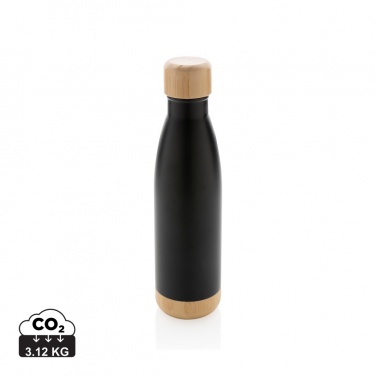 Vakuum stainless steel flaska med kork och botten i bambu, svart