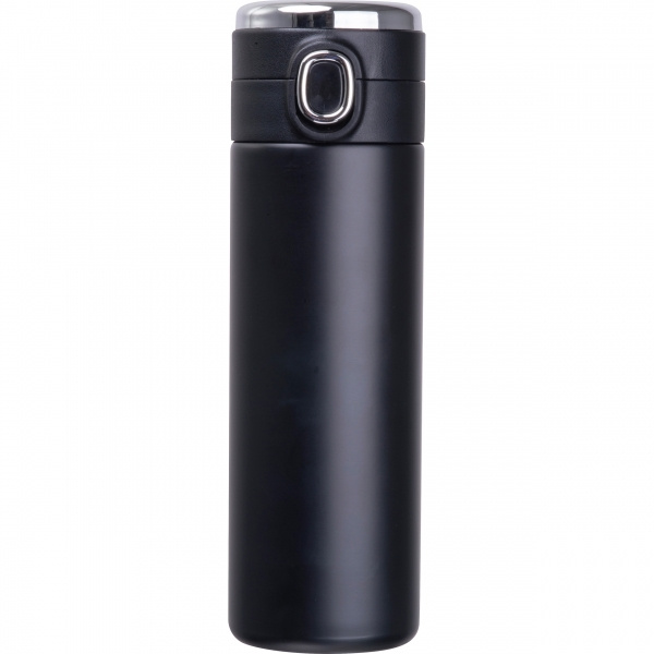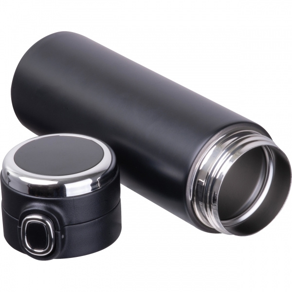 Vakuumisolerad flaska i rostfritt stål med temperaturdisplay i locket och säkerhetslås. Maximal temperaturdisplay: 99°C. Din logotyp appliceras på flaskan med lasergravyr.