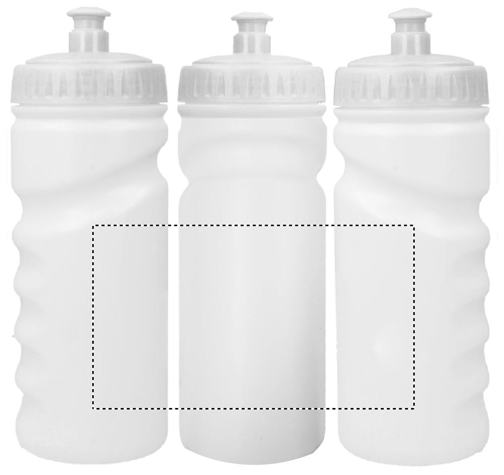 Sportig vattenflaska med bekväm handtag format efter handen. Material i fast PE-plast. Kapacitet: 500 ml. Läckagefritt.