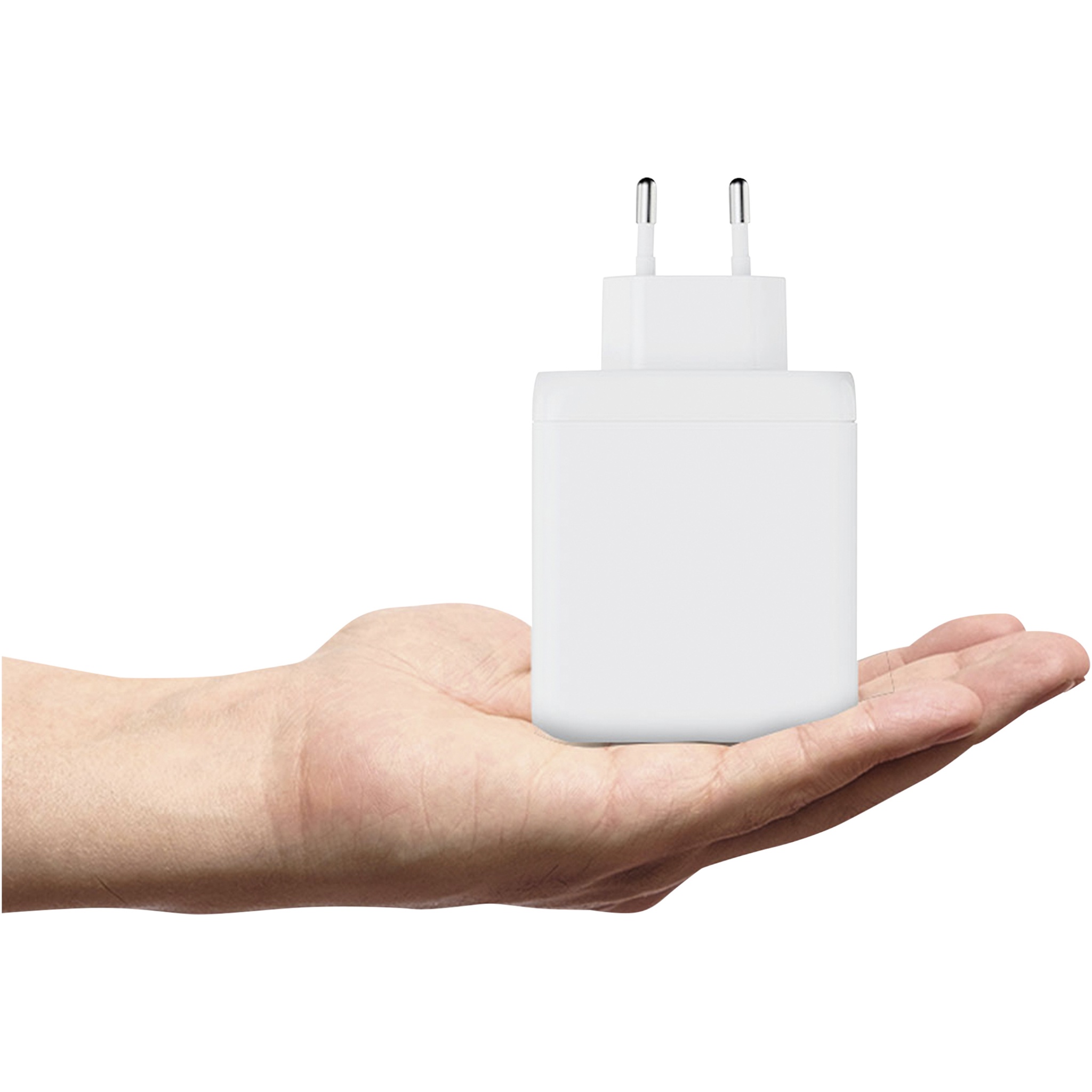 Väggladdaren GaN² Ultra på 100 W är utformad för att vara mer kompakt och kraftfull än någonsin tidigare. Med den kompakta designen och treportsfunktionen är den här väggladdaren perfekt på resor, kontoret eller för hemmet. Laddaren är tillverkad av 97 % återvunnen plast för att minska avfallet och bidra till en mer hållbar framtid. Utgång 2 x USB-C 100 W strömförsörjning och 1 USB-A 18 W snabbladdning 3.0. Levereras med en användarhandbok.